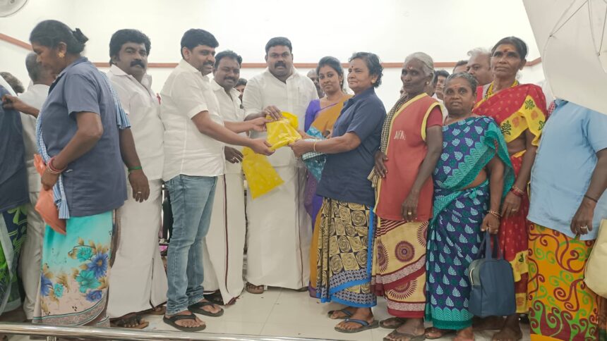 கலைஞர் நூற்றாண்டு நிறைவு விழா 101 வது பிறந்தநாள் தொடர் நிகழ்ச்சியாக சங்கரன் கோவில் நகராட்சியில் பணிபுரியும் தூய்மை பணியாளர்களுக்கு மாவட்ட இளைஞரணி துணை அமைப்பாளர் சரவணன் ஏற்பாட்டில் 300 தூய்மை பணியாளர்களுக்கு புத்தாடைகளை வடக்கு திமுக மாவட்ட செயலாளர் சங்கரன்கோவில் எம்எல்ஏ வழக்கறிஞர் ராஜா வழங்கினார் நகர்மன்ற சேர்மன் உமா மகேஸ்வரி நகரசெயலாளர் பிரகாஷ் முன்னிலையில் வழங்கப்பட்டது
