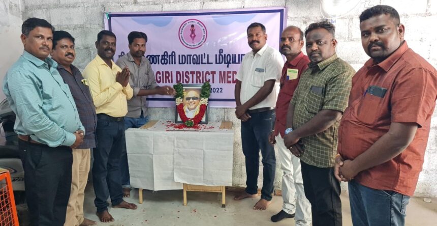 மூத்த பத்திரிக்கையாளர், முன்னாள் முதல்வர், திமுகவின் ஒப்பற்ற தலைவர் டாக்டர் கலைஞர் அவர்களின் 101 வது பிறந்த நாளை முன்னிட்டு, கிருஷ்ணகிரி மாவட்ட மீடியா கிளப் சார்பில் , அன்னாரது புகைப்படத்திற்கு மாலை அணிவித்து மரியாதை செலுத்த பட்டது. பின்னர் பொது மக்களுக்கு இனிப்புகள் வழங்கி கொண்டாட பட்டது. இந்த நிகழ்ச்சியில் கிருஷ்ணகிரி மாவட்டத்தில் பணிபுரியும் பத்திரிக்கை மற்றும் ஊடகத்தை சேர்ந்த மாவட்ட நிருபர்கள் மற்றும் புகைப்படக் கலைஞர்கள் பலர் கலந்து கொண்டனர்.