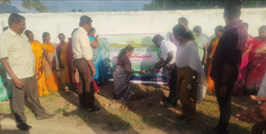 போடிநாயக்கனூர் நகர் மன்ற தலைவர் திருமதி ராஜராஜேஸ்வரி சங்கர் தலைமையில் போடி முந்தல் சாலையில் உள்ள நகராட்சிக்கு பாத்திய பட்ட இடத்தில் பனைமர விதைக்களை நட்டு வைத்து துவக்கி வைத்தார்