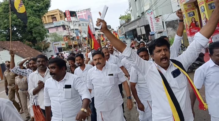 ஆனால் அதனை மீறி தேமுதிக -வினர் ஊர்வலமாக சென்றனர். இதனால் அவர்களுக்கும், போலீசாருக்கும் தள்ளுமுள்ளு ஏற்பட்து. தக்கலை பஸ் நிலையம் வந்ததும் சாலையில் அமர்ந்து மறியல் போராட்டத்தில் ஈடுபட்டனர். இதையடுத்து 20 பெண்கள் உட்பட 200-க்கும் மேற்பட்டவர்களை போலீசார் கைது செய்தனர். தக்கலை ஒன்றிய செயலாளர் கிரிஸ்டோபர் உட்பட ஏராளமானவர்கள் கலந்து கொண்டனர்.