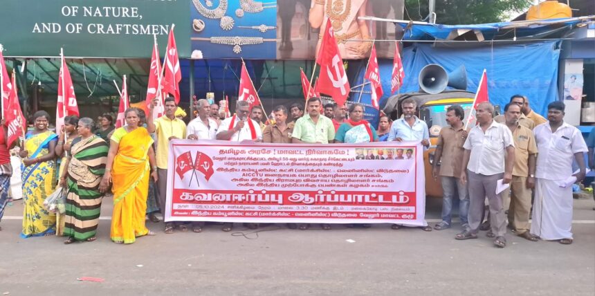 வேலூர் மாவட்டம், வேலூர் மாநகராட்சிக்கு உட்பட்ட அரியூர் 58 வது வார்டு சுகாதார சீர்கேட்டையும் மற்றும் நாராயணி பவன் ஹோட்டல் நிர்வாகத்தையும் கண்டித்து இந்திய கம்யூனிஸ்ட் கட்சி மார்க்சிஸ்ட் லெனின் விடுதலை ஏஐசிசிடியு ஜனநாயக பொது தொழிலாளர் சங்கம் அனைத்திந்திய கிராமப்புற விவசாய தொழிலாளர் சங்கம் அகலிந்திய முற்போக்கு பெண்கள் கழகம் சார்பில் மலைக்கோடி பஸ் நிலையத்தில் கவன ஈர்ப்பு ஆர்ப்பாட்டம் மாநில துணைச் செயலாளர் ஜி .செந்தில்நாதன் மா.கு. ஆர் .பாத்திமா தலைமையிலும், சங்கர் செல்வம் சிவகுமார் யுவராஜ் ரமேஷ் சதீஷ்குமார் பழனி ஆகியோர் முன்னிலையிலும் நடைபெற்றது இதில் மாவட்ட செயலாளர் சிபிஐஎம்எல் எம் சரோஜா ம.செ.AiRllA A. மாணிக்கம்,மா.த.AICCTU A ஏழுமலை மா.பொ.செ. AICCTU S.A. சிம்பு தேவன் ஆகியோர் சிறப்புரையாற்றினர் உடன் இந்திய கம்யூனிஸ்ட் கட்சி( மார்க்சிஸ்ட் லெனினிஸ்ட் விடுதலை )வேலூர் மாவட்ட குழுவினர்கள் பலர் கலந்து கொண்டனர்.