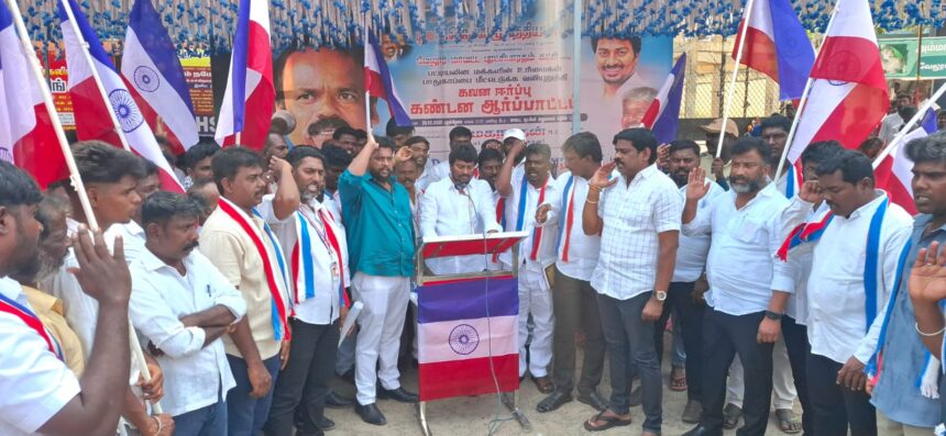 வேலூர் மாவட்டம் ,வேலூர் மாவட்ட ஆட்சியர் அலுவலகம் அருகில் வேலூர் மாவட்ட புரட்சி பாரதம் கட்சியின் சார்பில் பட்டியலின மக்களின் உரிமைகள் பாதுகாப்பை மீட்டெடுக்க வலியுறுத்தி கவன ஈர்ப்பு கண்டன ஆர்ப்பாட்டம் வேலூர் மாவட்ட செயலாளர் பி. மேகநாதன் தலைமையில் நடைபெற்றது மாவட்ட கொள்கை பரப்புச் செயலாளர் மு.ஆ. சத்தியனார் மாவட்ட பொருளாளர் ஒன்றிய குழு உறுப்பினர் குட்டி என்கிற கே. வெங்கடேசன் ஆகியோர் வரவேற்புரையாற்றினர் .வேலூர் தொகுதி மாவட்ட செயலாளர் முகுந் நாராயணன் ராஜா ,கோபி ,பிரின்ஸ், பசுபதி, கருணாகரன் ,ஆகியோர் முன்னிலை வகித்தனர் . புரட்சி பாரதம் கட்சி முதன்மை செயலாளர் டி .ருசேந்திர குமார் ,மாநில செயலாளர் டி .கே. சீனிவாசன், மாநில துணை செயலாளர் கே .கோபிநாத் ,ஆகியோர் கண்டன உரையாற்றினர் .மாவட்ட இளைஞர் அணி செயலாளர் நந்தகுமார் நன்றி உரையாற்றினார். உடன் மாவட்ட நகர ஒன்றிய வார்டு கிளை பொறுப்பாளர்கள் நிர்வாகிகள் பலர் கலந்து கொண்டனர்.