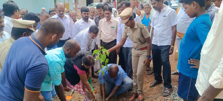 பரமக்குடி அருகே திணைக்குளம் கிராமத்தில் பரமக்குடி வட்ட சட்டப் பணிகள் குழு சார்பாக நடைபெற்ற மரம் நடும் விழாவில் நீதிபதிகள மரக்கன்றுகளை நட்டு வைத்தனர்
