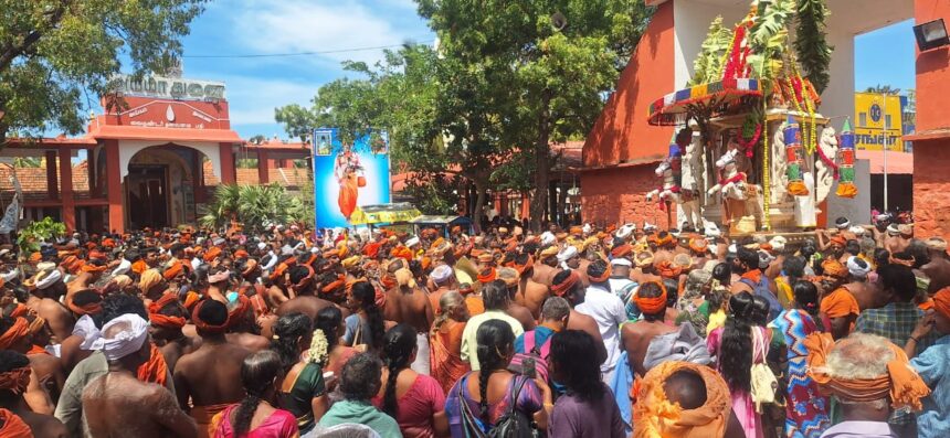 தலைமைப்பதியின் முன்பிருந்து புறப்பட்ட திருத்தேர் கீழரத வீதி, தெற்கு ரதவீதி, மேல ரத வீதி வழியாக வடக்கு ரத வீதியில் உள்ள தலைமைப்பதியின் வடக்கு வாசல் பகுதிக்கு வந்தது.