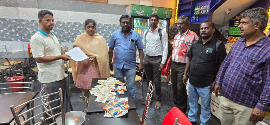 திருப்பூர் காங்கயம் ரோடு சிடிசி கார்னர் பகுதியில் தடை செய்யப்பட்ட புகையிலை பொருட்களை விற்பனை செய்வதாக உணவு பாதுகாப்பு அதிகாரிகளுக்கு புகார்கள் வந்தது. அதன் பேரில் உணவு பாதுகாப்புத்துறை அதிகாரி விஜயலலிதாம்பிகை தலைமையில் அதிகாரிகள் மற்றும் திருப்பூர் தெற்கு தனிப்படை போலீசார் சோதனையில் ஈடுபட்டனர். அப்போது ஒரு பேக்கரியில் புகையிலை பொருட்கள் விற்பனை செய்தது தெரியவந்தது.
