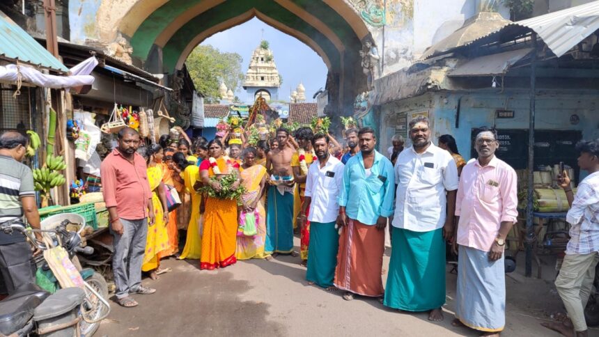 மயிலாடுதுறை வண்டிக்காரத்தெரு பிரசன்ன மாரியம்மன் கோயிலில் பூ வியாபாரிகள் சங்கம் சார்பில் பால்குட விழா.