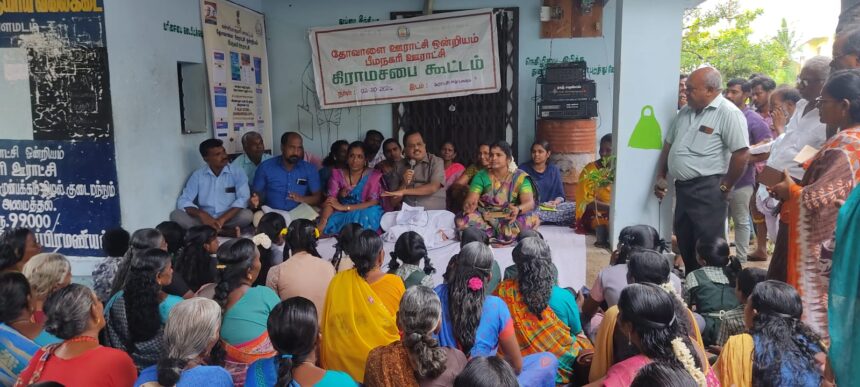 தோவாளை ஊராட்சி ஒன்றியம், பீமநகரி ஊராட்சியில் கிராம சபைக் கூட்டம் நியாய விலைக் கடை அருகில் நேற்று நடைபெற்றது. இக்கூட்டம் பீமநகரி ஊராட்சித் தலைவர் சஜிதா தலைமையில் நடைபெற்றது. இக்கூட்டத்தில் முன்னாள் அமைச்சரும், கன்னியாகுமரி சட்டமன்ற உறுப்பினருமான என்.தளவாய்சுந்தரம் பங்கேற்றார். அப்போது அவர் பேசுகையில்:-