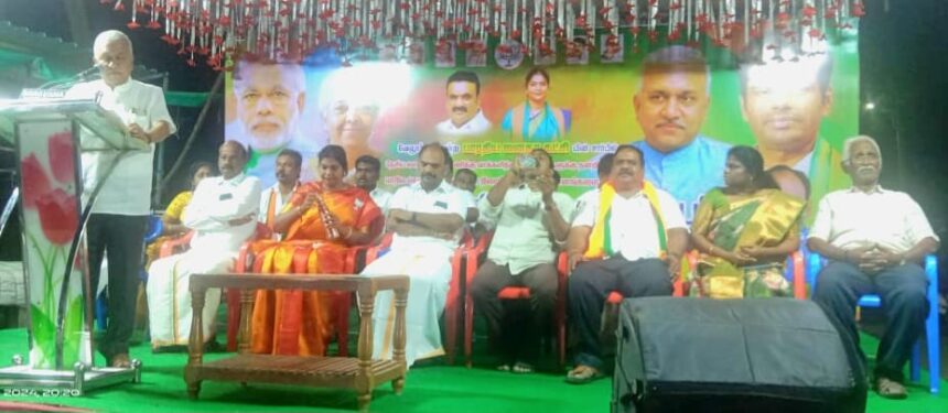 வேலூர் அண்ணா கலையரங்கம் அருகில் பாஜக பட்ஜெட் விளக்க பொதுக்கூட்டம் நடந்தது. நாராயணன் திருப்பதி சிறப்புரையாற்றினார்.