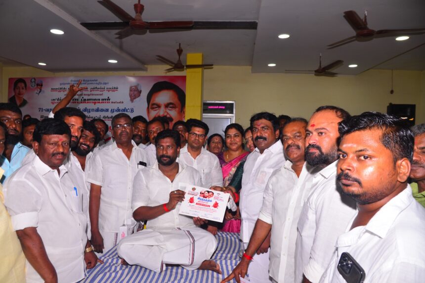 அதிமுக பொதுச்செயலாளர் எடப்பாடி பழனிச்சாமியின் 71 வது பிறந்த நாளை முன்னிட்டு ராமநாதபுரம் மாவட்ட அதிமுக., தகவல் தொழில்நுட்ப பிரிவு, அண்ணா தொழிற்சங்கம், மருத்துவர் அணி, அமைப்பு சாரா ஓட்டுநர் அணி சார்பில் ரத்த தான முகாம் நடந்தது. மாவட்ட அதிமுக செயலாளர் முனியசாமி தொடங்கி வைத்தார்.
