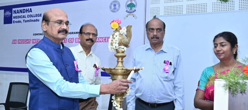 நந்தா கல்வி அறக்கட்டளையின் தலைவர் வி.சண்முகன் தலைமையில் நடைபெற்ற இக்கருத்தரங்கினை கல்லூரியின் புலமுதல்வர் சந்திரபோஸ் மற்றும் மருத்துவமனை கண்காணிப்பாளர் சுந்திரவேல் ஆகியோர் குத்து விளக்கேற்றி துவக்கி வைத்தார்கள். மேலும் இக்கருத்தரங்கில் நோயியல் துறையின் தலைவர் மருத்துவர் வைத்தியலிங்கம் மற்றும் அறுவை சிகிச்சைத் துறையின் தலைவர் மருத்துவர் சத்தியபாமா ஆகியோர் முன்னிலை வகித்தார்கள்.