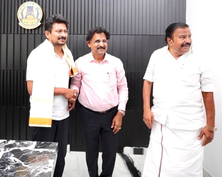 தமிழகத்தின் துணை முதலமைச்சராக பொறுப்பேற்றுள்ள திமுக இளைஞரணி செயலாளர் மாண்புமிகு உதயநிதி ஸ்டாலினை “ஸ்கைவின்” வணிக நிறுவனங்களின் தலைவர் எம்.மோகன் நேரில் சந்தித்து பொன்னாடை அணிவித்து அவரது பணி சிறக்க வாழ்த்து தெரிவித்தார். அருகில் தமிழக நகர்ப்புற வளர்ச்சித்துறை அமைச்சர் கே.என்.நேரு மற்றும் அமைச்சர்கள், சட்ட மன்ற உறுப்பினர்கள், அதிகாரிகள் மற்றும் திமுக நிர்வாகிகள் உள்ளிட்டோர் உடனிருந்தனர்.