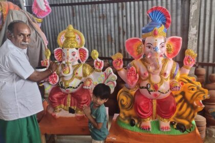 ஈரோடு நசியனூரில் விதவிதமாக தயாரிக்கப்படும் விநாயகர் சிலைகள்