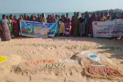 குமரி கடற்கரை கிராமத்தில் மகளிர் சுயஉதவிக்குழுவினர் தேர்தல் விழிப்புணர்வு