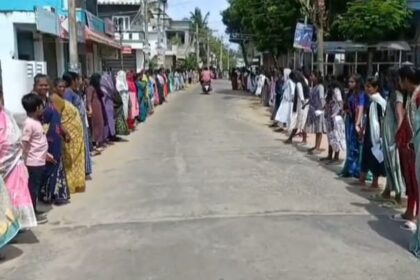 கிராம மீனவர்கள் மனித சங்கிலி போராட்டம்