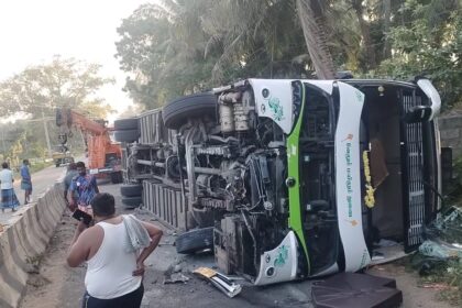 நாகர்கோவில் அருகே சாலை தடுப்புச் சுவரில் மோதி ஆம்னி பஸ் கவிழ்ந்தது; 20 பேர் படுகாயம்