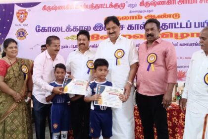 கிருஷ்ணகிரியில் முதலாம் ஆண்டு கால்பந்தாட்ட கோடை கால பயிற்சி நிறைவு விழா.