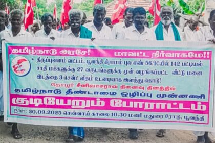 பூவந்தி ஆதி திராவிடர்களுக்கு இலவச மனைகளை அளவீடு செய்து தர கோரி ஆர்ப்பாட்டம்