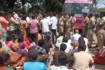 பேருந்தை மறித்து பொது மக்கள் கடும் வாக்குவாதம்