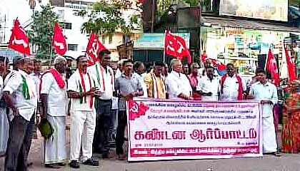 மக்களவை உறுப்பினர் சு. வெங்கடேசனுக்கு கொலை மிரட்டல் விடுத்த நபரை கைது செய்யக் கோரி மார்க்சிஸ்ட் கம்யூனிஸ்டு கட்சியினர் ஆர்ப்பாட்டம்