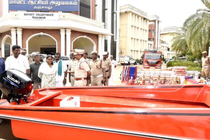 தஞ்சாவூரில் தென்மேற்கு பருவமழையை முன்னிட்டு தீயணைப்பு மீட்பு பணி உபகரணங்கள் – மாவட்ட கலெக்டர் பிரியங்கா பங்கஜம் ஆய்வு