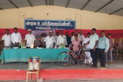 பெரியகரம் அரசு உயர்நிலைப் பள்ளியில் கல்வி வளர்ச்சி நாளை முன்னிட்டு மாணவர்களுக்கு மிதிவண்டி வழங்கும் விழா