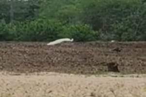 இறை தேடி வரும் அரிய வகை வெள்ளை நிற மயில்