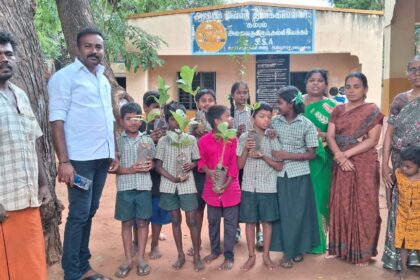 மரக்கன்று கொடுத்து விழிப்புணர்வு ஏற்படுத்திய சமூக ஆர்வலர்