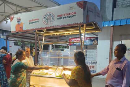 மதுரை டிசம்பர் 17 மதுரை ரயில் நிலையத்தில் உள்ளூர் தயாரிப்புகளை பிரபலப்படுத்தும் வகையில் தள்ளுவண்டி மூலம் மல்லிகை பூ…