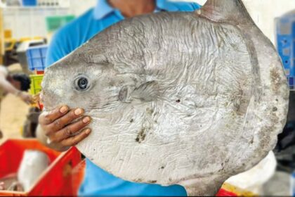பாம்பன் மீனவன் விசைப்படகில் சிக்கிய அரிய வகை சூரிய மீன்