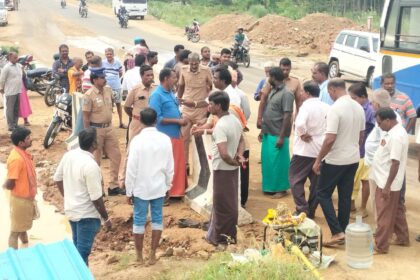 தென்தாமரைகுளம்., ஏப். 11.பொற்றையடி பகுதியில் நான்கு வழி சாலை பணிகளுக்காக குளத்தில் மேம்பாலங்கள் அமைக்கும் பணி…