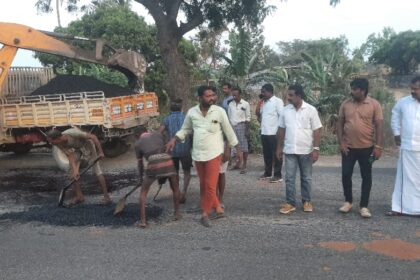 குண்டும் குழியுமாக காணப்பட்ட தேசிய நெடுஞ்சாலை.