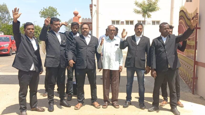 நீதிமன்ற வளாகத்தின் முன்பு வழக்கறிஞர்கள் ஆர்ப்பாட்டம்