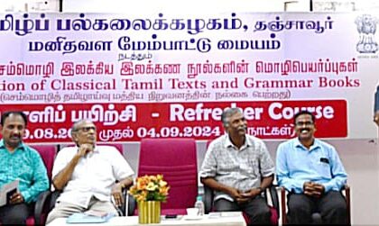 தஞ்சாவூர் ஆகஸ்ட் 22தஞ்சாவூர் தமிழ் பல்கலைக்கழகத் தில் மனித வள மேம்பாட்டு மையம் சார்பில் செம்மொழி…