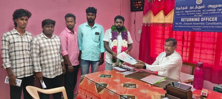 திருப்பத்தூர், ஏப். 2 - திருப்பத்தூர் மாவட்டத்தில் வேட்புமனு தாக்கல் செய்து வரும் நிலையில் ஜோலார்பேட்டை சட்டமன்றத் தொகுதி சுயேட்சை வேட்பாளர் மோகன்ராஜ் நாட்றம்பள்ளி வட்டாட்சியர் அலுவலகத்தில்…