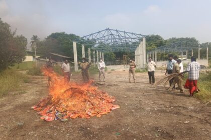 பறிமுதல் செய்யப்பட்ட குட்கா பொருட்கள் தீயிலிட்டு அழிப்பு