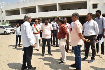 பேருந்து நிலையம் கட்டப்பட்டு வருவதை ஆய்வு