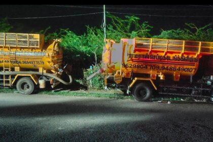 தென்காசி புதிய பேருந்து நிலையம் அருகே நிறுத்தப்பட்டிருக்கும் கழிவு நீர் அகற்றும் வாகனங்கள் நள்ளிரவில் பல…