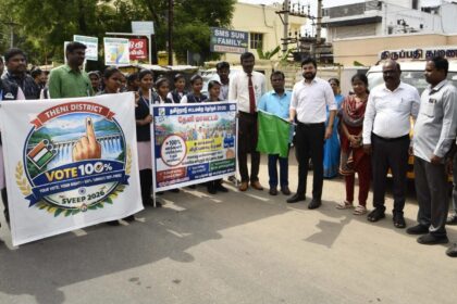 தேனி, ஏப்ரல் 9 - தமிழ்நாடு சட்டமன்ற பொதுத்தேர்தல் 2026-ஐ முன்னிட்டு, 100 சதவீத வாக்குப்பதிவை வலியுறுத்தும் வகையில் தேனி மாவட்டத்தில் இன்று விழிப்புணர்வு நடைபயணப் பேரணி…