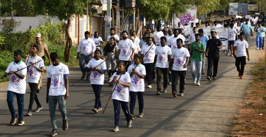 100% வாக்குப்பதிவை வலியுறுத்தி தேனியில் விழிப்புணர்வு நடைபயணம்!