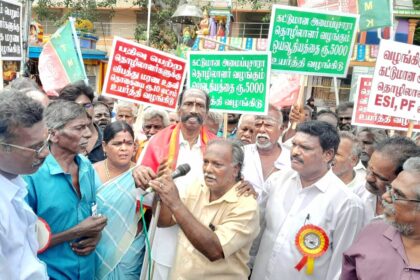 வேலூர்_01 வேலூர் மாவட்டம் அகில இந்திய கட்டுமான அமைப்பு சாரா தொழிற்சங்கங்களின் கூட்டமைப்பு வேலூர் மாவட்டம் சார்பாக…