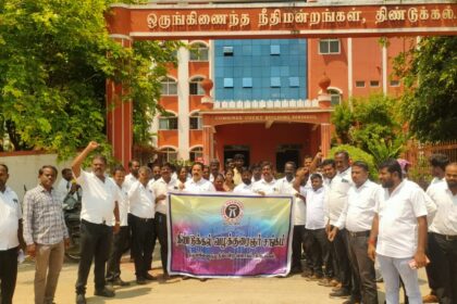 திண்டுக்கல்லில் வழக்கறிஞர் கோர்ட்டை புறக்கணித்து போராட்டம்