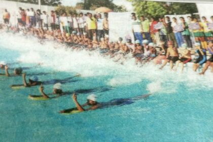 தஞ்சாவூர் அன்னை சத்யா விளையாட்டு அரங்கில் 100 சதவீதம் வாக்களிக்க வலியுறுத்தி நீச்சல் பயிற்சி மூலம் தேர்தல் விழிப்புணர்வு: வீரர், வீராங்கனைகள் பங்கேற்பு