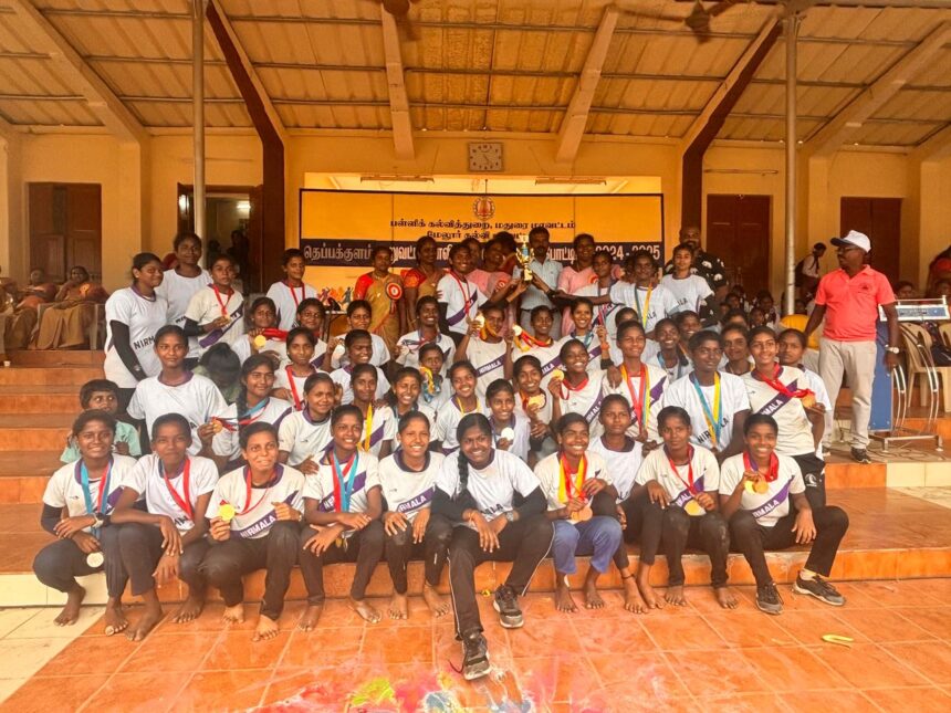 இப்போட்டியில் பங்கேற்ற மதுரை நிர்மலா பெண்கள் மேனிநிலைப் பள்ளி மாணவிகள் மாணவியருக்கான தடகள போட்டியில் 181 புள்ளிகள் பெற்று