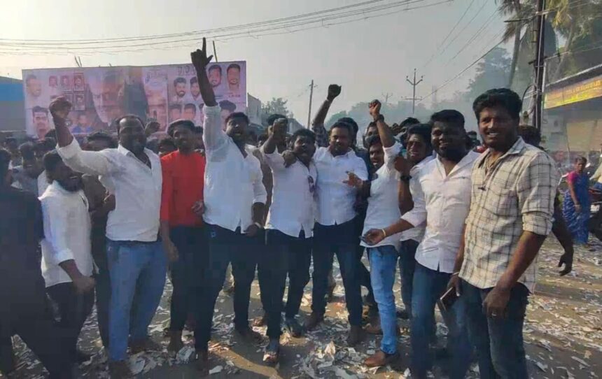 மயிலாடுதுறையில் முன்னனி நடிகர் அஜித்தின் விடாமுயற்சி திரைப்படம் திரையரங்குகளில் வெளியீடு ரசிகர்கள் பட்டாசு வெடித்தும், பாலபிஷேகம் செய்தும் கொண்டாட்டம்.