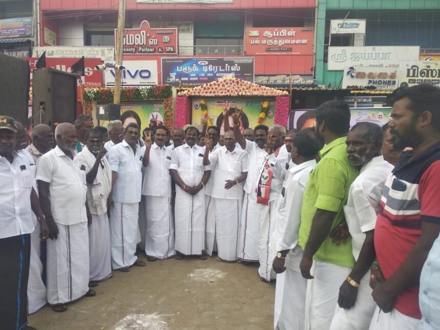 முதுகுளத்தூரில் அதிமுக மத்திய ஒன்றிய கழகம் சார்பில் ஜெயலலிதா 77வது பிறந்தநாள் விழா இனிப்பு வழங்கி கொண்டாட்டம் முதுகுளத்தூர். பிப்25, முதுகுளத்தூர் அதிமுக மத்திய ஒன்றிய கழகம் சார்பில் ஒன்றிய செயலாளர் எஸ்.டி.செந்தில்குமார் ஏற்பாட்டில் முன்னாள் முதல்வர் ஜெயலலிதாவின் 77 வது பிறந்தநாள் விழாவை பொதுமக்களுக்கு இனிப்பு வழங்கி கொண்டாடினார்கள். இதில் முன்னாள் எம் எல் ஏ மலேசியா பாண்டியன், நகர கழக செயலாளர் முத்துராமலிங்கம், ஒன்றிய கழக செயலாளர்கள் கர்ணணன், கருப்பசாமி, நகர் அவைத்தலைவர் கருப்பசாமி, அம்சராஜ், கண்ணன் உள்பட அதிமுகவினர் பெருந்திரளாக கலந்து