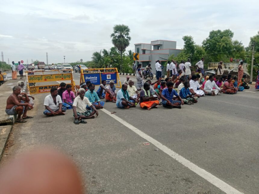 அரியலூர் மாவட்டம் புதுப்பாளையம் கிராமத்தில் கடந்த 13 ஆம் தேதி டாரஸ் லாரி வீட்டிற்குள் புகுந்த விபத்தில் தாய் அம்பிகா உள்ளிட்ட மூன்று பேர் படுகாயம் அடைந்து அரியலூர் அரசு மருத்துவக் கல்லூரி மருத்துவமனையில் சிகிச்சை பெற்று வந்தனர் இதில் ஆபத்தான நிலையில் இருந்த ரம்யா என்ற சிறுமி மேல் சிகிச்சைக்காக தஞ்சாவூர் மருத்துவ கல்லூரி மருத்துவமனையில் அனுமதிக்கப்பட்டுள்ளார் இந்நிலையில் பாதிக்கப்பட்ட குடும்பங்களுக்கு உரிய இழப்பீடு வழங்க வேண்டும் என வலியுறுத்தி புதுப்பாளையம் கிராமத்தில் உள்ள திருச்சி சிதம்பரம் தேசிய நெடுஞ்சாலையில் பாதிக்கப்பட்டவர்களின் உறவினர்கள் மற்றும் பொதுமக்கள் சாலை மறியல் போராட்டத்தில் ஈடுபட்டனர் சம்பவ இடத்திற்கு வந்த கோட்டாட்சியர் ராமகிருஷ்ணன் மற்றும் போலீசார் பொதுமக்களிடம் பேச்சுவார்த்தை நடத்தி உரிய நடவடிக்கை எடுப்பதாக கூறியதையடுத்து பொதுமக்கள் கலைந்து சென்றனர் இதனால் திருச்சி சிதம்பரம் தேசிய நெடுஞ்சாலையில் சுமார் அரை மணி நேரம் போக்குவரத்து பாதிக்கப்பட்டது