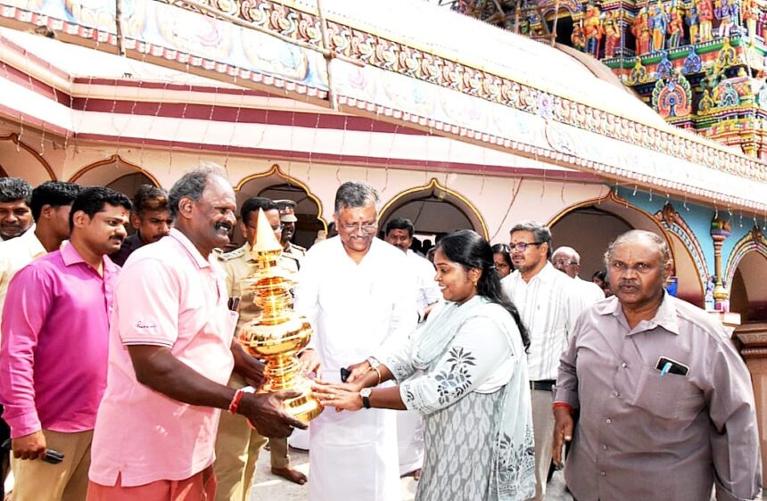 இதையொட்டி கோயிலின் கலசங் கள் பொருத்தும் பணி தொடங்கி யது .இதில் அம்மன், துர்க்கை அம்மன், பேச்சியம்மன் சன்னதி யில் கோபுரத்தில் புதிதாக தங்க முலாம் பூசப்பட்ட கலசங்கள் பொருத்தப்படுகின்றன. மற்ற கோவில்கள் உள்ள கலசங்கள் மெருகூட்டப்பட்டு பொருத்தப்பட உள்ளன. இதைப்போல மொத்தம் 32 கலசங்கள் பொருத்தப் படுகின்ற ன மேலும் கோவில் கொடி மரத்தி லும் செப்பு கலசம் பொருத்தும் பணி முடிவடைந்துள்ளது.