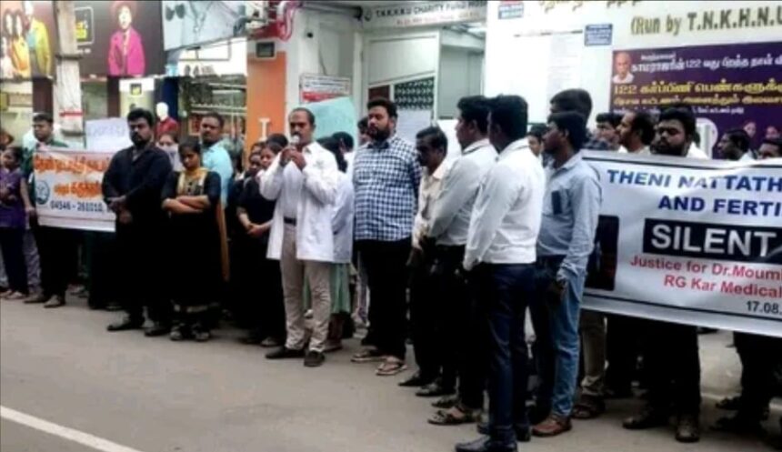 தேனி நகரில் அமைந்துள்ள நட்டாத்தி நாடார் மருத்துவமனை மற்றும் கருத்தரித்தல் மையம் சார்பில் நட்டாத்தி நாடார் மருத்துவமனையில் செயலாளர் கமலக்கண்ணன் தலைமையில் மருத்துவர் ஜெகதீஷ் முன்னுரியில் ஆர்ப்பாட்டம் நடைபெற்றது கல்கத்தா ஆர் ஜீ சேகர் மருத்துவக் கல்லூரியில் பெண் மருத்துவர் பாலியல் வன்கொடுமை செய்து கொலை செய்யப்பட்டதற்கு நியாயம் வேண்டும் குற்றத்தை செய்த குற்றவாளிகளுக்கு கடுமையான தண்டனை வழங்க வேண்டும் என்ற கோரிக்கையை வலியுறுத்தி மருத்துவர்கள் ஒருநாள் வேலை நிறுத்த போராட்டத்தில் ஈடுபட்டதோடு மருத்துவர்கள் செவிலியர்கள் மருத்துவமனை ஊழியர்களின் ஊர்வலம் மேற்கண்ட கோரிக்கையை வலியுறுத்தி நடைபெற்றது. இந்த ஆர்ப்பாட்டத்தில் நட்டாத்தி நாடார் மருத்துவர்கள் செவிலியர்கள் மருத்துவமனை ஊழியர்கள் பலர் கலந்து கொண்டனர் இந்த நிகழ்வுக்கான ஏற்பாடுகளை நட்டத்தி நாடார் மருத்துவமனை மேலாளர் சாந்தி நட்டாத்தி நாடார் மருத்துவமனை கருத்தரித்தல் மைய மேலாளர் எ பி ஜேம்ஸ் மக்கள் தொடர்பாளர் ஷேக் ஆகியோர் சிறப்பாக செய்திருந்தனர்.