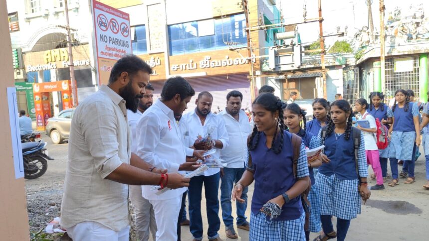 தமிழக வெற்றி கழகத்தின் மாவட்ட செயலாளர் குட்டிகோபிநாத் தலைமையில் அரசு பள்ளி மாணவ- மாணவிகளுக்கு இனிப்பு மற்றும் பேனா, பென்சில், ரப்பர், ஸ்கேல் அடங்கிய எழுது பொருள்களையும் வழங்கி வாழ்த்து தெரிவித்தனர். இதில் நகரப் பொறுப்பாளர் ராஜ்குமார், மாவட்டத் துணைச் செயலாளர் அறிவரசன், மாவட்ட செயற்குழு உறுப்பினர்கள் ரம்யா, ஜாஸ்மின், நகர பொறுப்பாளர்கள் பிரபஞ்சன், குமார், பிரபு, ஹரி, சுரேஷ், சிக்கந்தர் மணி, மற்றும் ஒன்றிய நகர பொறுப்பாளர்கள் கழக தோழர்கள் கலந்து கொண்டனர்.