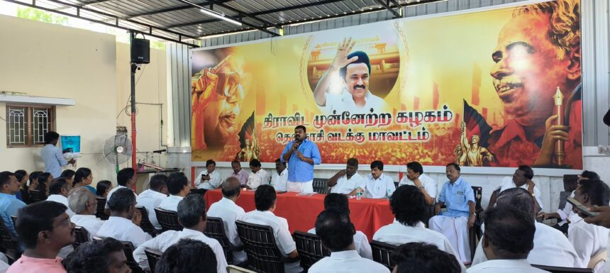 தென்காசி வடக்கு மாவட்டம் சங்கரன்கோவில் மற்றும் வாசுதேவநல்லூர் தொகுதி பொறுப்பாளர்கள் அறிமுக கூட்டம் சங்கரன்கோவில் ரயில்வே பீடர் சாலையில் உள்ள வடக்கு மாவட்ட கழக அலுவலகத்தில் வைத்து நடந்தது கூட்டத்திற்கு மாவட்ட அவைத் தலைவர் பத்மநாபன் தலைமை வகித்தார் தலைமை செயற்குழு உறுப்பினர்கள் முன்னாள் அமைச்சர் தங்கவேலு ,யூஎஸ்டி சீனிவாசன் ,பரமகுரு, மாநில மருத்துவ அணி துணைச் செயலாளர் டாக்டர் செண்பக விநாயகம், மாவட்ட துணைச் செயலாளர்கள் ராஜதுரை ,மனோகரன் மாவட்ட பொருளாளர் சரவணன் முன்னிலை வகித்தனர். சங்கரன்கோவில் நகர செயலாளர் பிரகாஷ் வரவேற்றார். இதில் தென்காசி வடக்கு மாவட்ட செயலாளர் ராஜா எம்எல்ஏ கலந்துகொண்டு தென்காசி வடக்கு மாவட்டம் சங்கரன்கோவில் தொகுதிக்கு பொறுப்பாளராக நியமிக்கப்பட்டுள்ள தூத்துக்குடி தெற்கு மாவட்ட இளைஞரணி அமைப்பாளர் ராமஜெயம் மற்றும் வாசுதேவநல்லூர் தொகுதிக்கு பொறுப்பாளராக நியமிக்கப்பட்டுள்ள விருதுநகர் தெற்கு மாவட்ட இளைஞரணி அமைப்பாளர் முன்னாள் எம்பி தனுஷ் எம் குமார் ஆகியோரை அறிமுகப்படுத்தி பேசினார். இதில் பொதுக்குழு உறுப்பினர்கள்ஒன்றிய செயலாளர் லாலாசங்கரபாண்டியன், பொன்முத்தையாபாண்டியன், கடற்கரை உள்பட புளியங்குடி நகர செயலாளர் அந்தோணி சாமி, சங்கரன்கோவில் நகராட்சி சேர்மன் உமா மகேஸ்வரி சரவணன், மாவட்ட வக்கீல் அணி அமைப்பாளர் பிச்சையா, மாவட்ட மகளிர் அணி தலைவர் அன்புமணி கணேசன் மாவட்ட இளைஞரணி துணை அமைப்பாளர்கள் ஆர் சரவணன், ராஜ் வக்கீல் அணி காளிராஜ், நகராட்சி கவுன்சிலர்கள் உள்ளிட்ட பலர் கலந்து கொண்டனர்.